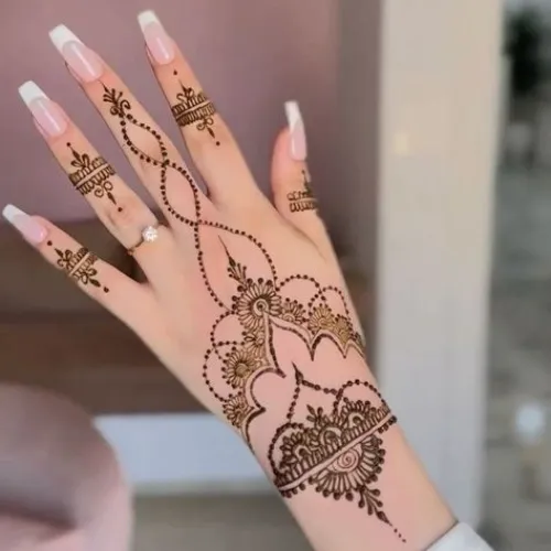 Bridal mehndi is often full-hand, but many modern brides now prefer minimal back hand designs too. A bridal back hand design can include:
