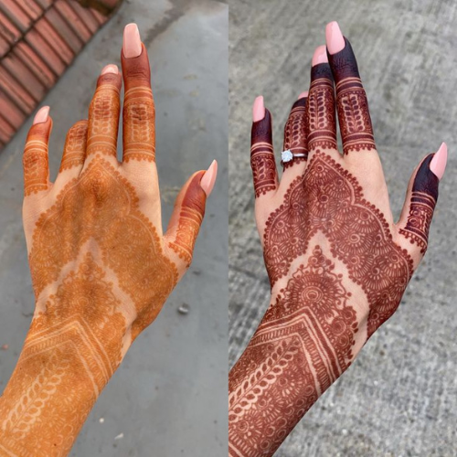 - Apply Vicks or mustard oil after scraping off the mehndi—it helps darken the color.