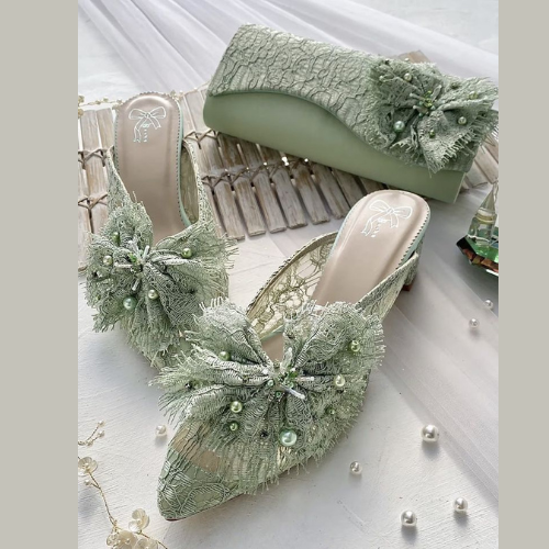 - Handcrafted clutches paired with evening gowns.