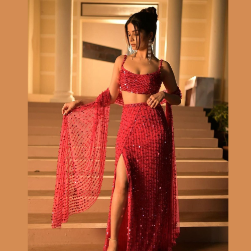 - Pair a pastel lehenga skirt with a sequined crop top.