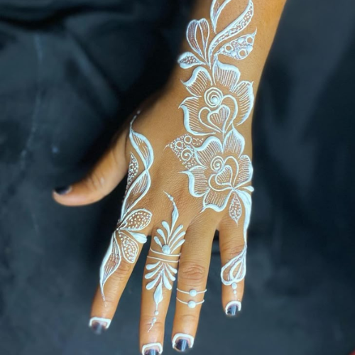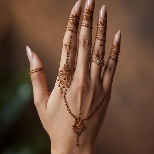 Think about finger ring designs, or just a few flowers on palm – very classy. It’s a fav choice for engagement functions, office events or casual parties. Simple doesn’t mean boring okay? It means elegant, neat and modern.
