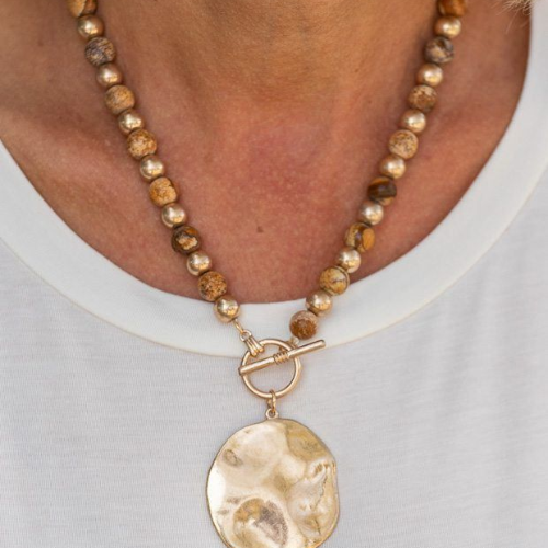 We’re seeing a lot more natural materials being used—like wood, shells, raw crystals, and even recycled metal. It’s not just about being eco-friendly (which is cool too), but also about giving off that earthy, grounded vibe. These necklaces don’t always look “perfect,” but that’s kind of the point. The raw edges and uneven textures make them feel more real. And when you’re someone who lives and breathes design like us, you notice how much beauty lives in the imperfect stuff.