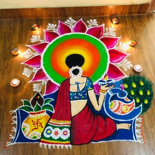 Rangoli holds a special place during Diwali, the festival of lights. It is not just a form of decoration but a beautiful blend of tradition, spirituality, and creativity. Creating rangoli at the entrance of homes during Diwali is believed to invite prosperity and positive energy.