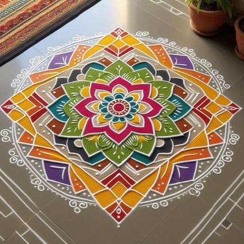 • Symbol of Auspiciousness: Rangoli signifies good luck, new beginnings, and festive spirit.