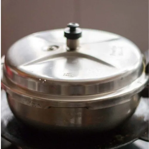Pour 2.5 cups of water and add salt as per taste. Let the water come to a boil.